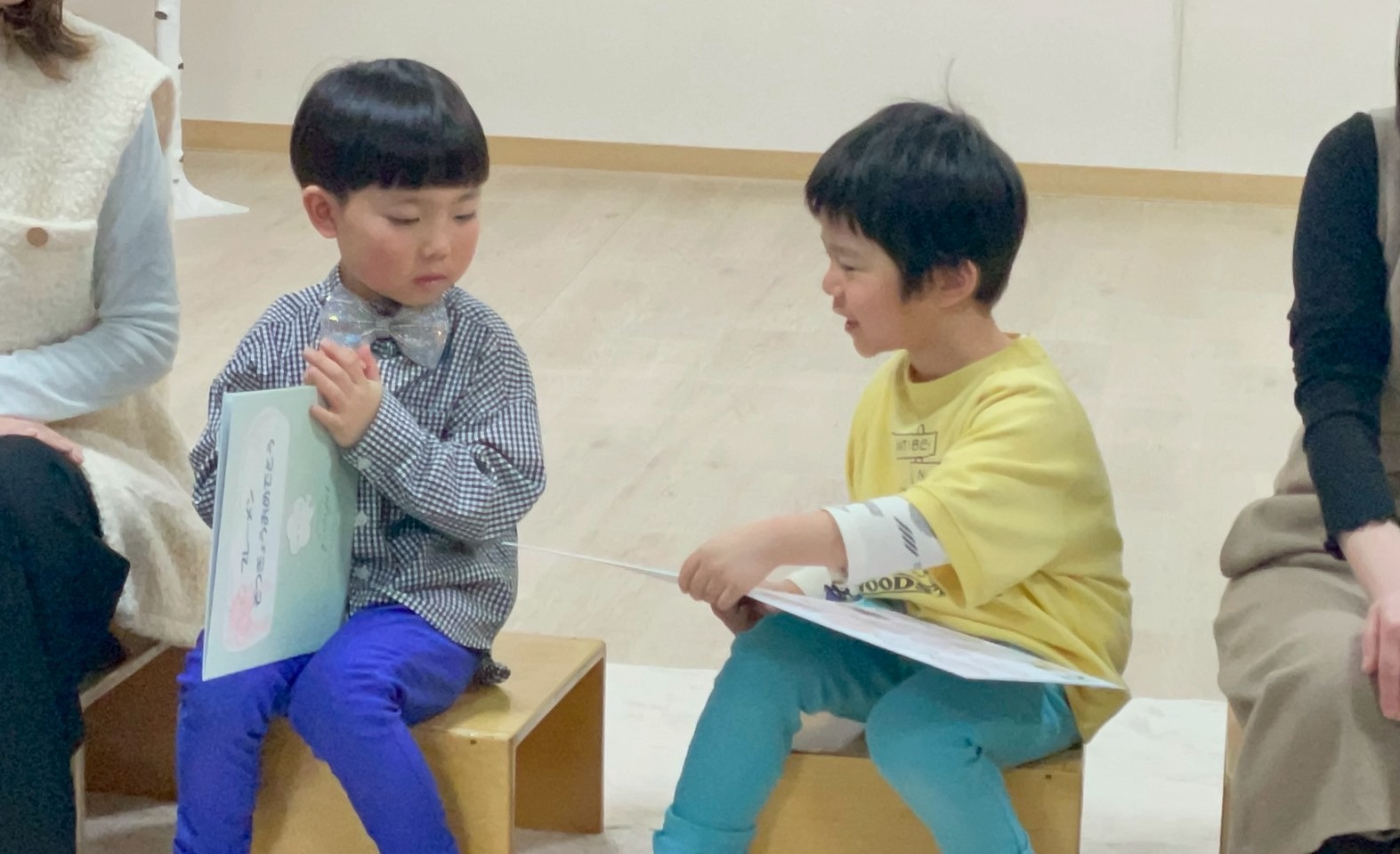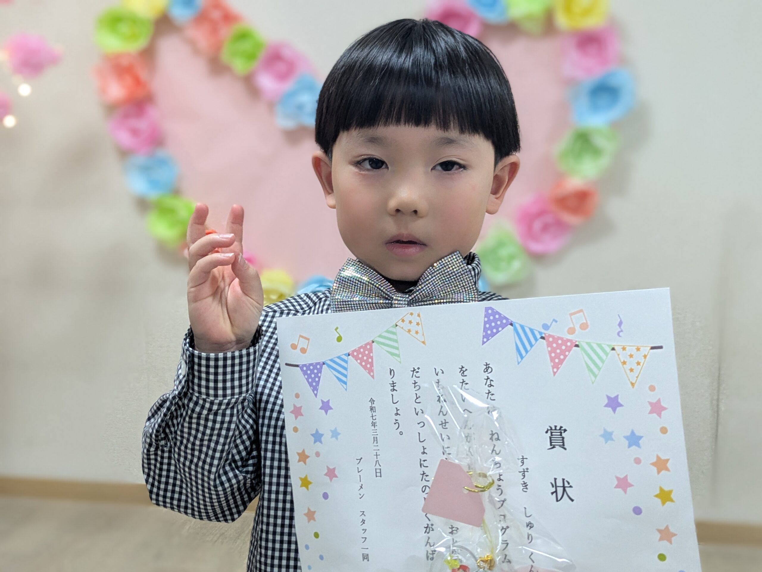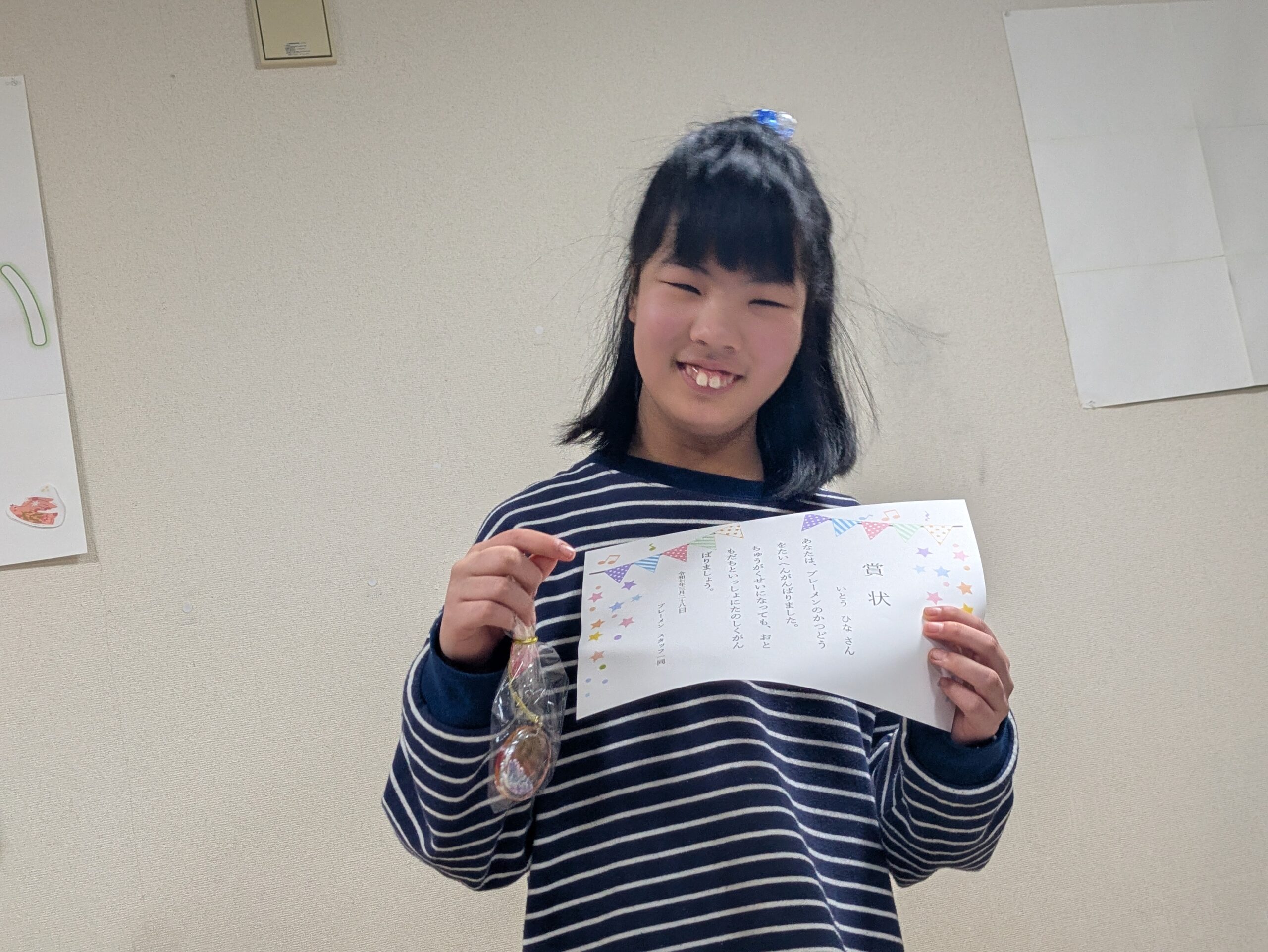 3月28日に進級を祝う会・お別れ会をしました。 4月から小学生・中学生になる子ども達の賞状授与から始まり シアターを見て、1年間の活動を振り返り 子ども達全員で笑顔でお祝いをしました。 そして、お引っ越しなどでお別れするお友達とのお別れ会。 「今までありがとう」「またね」と声を掛け、メッセージカードをプレゼントしました。