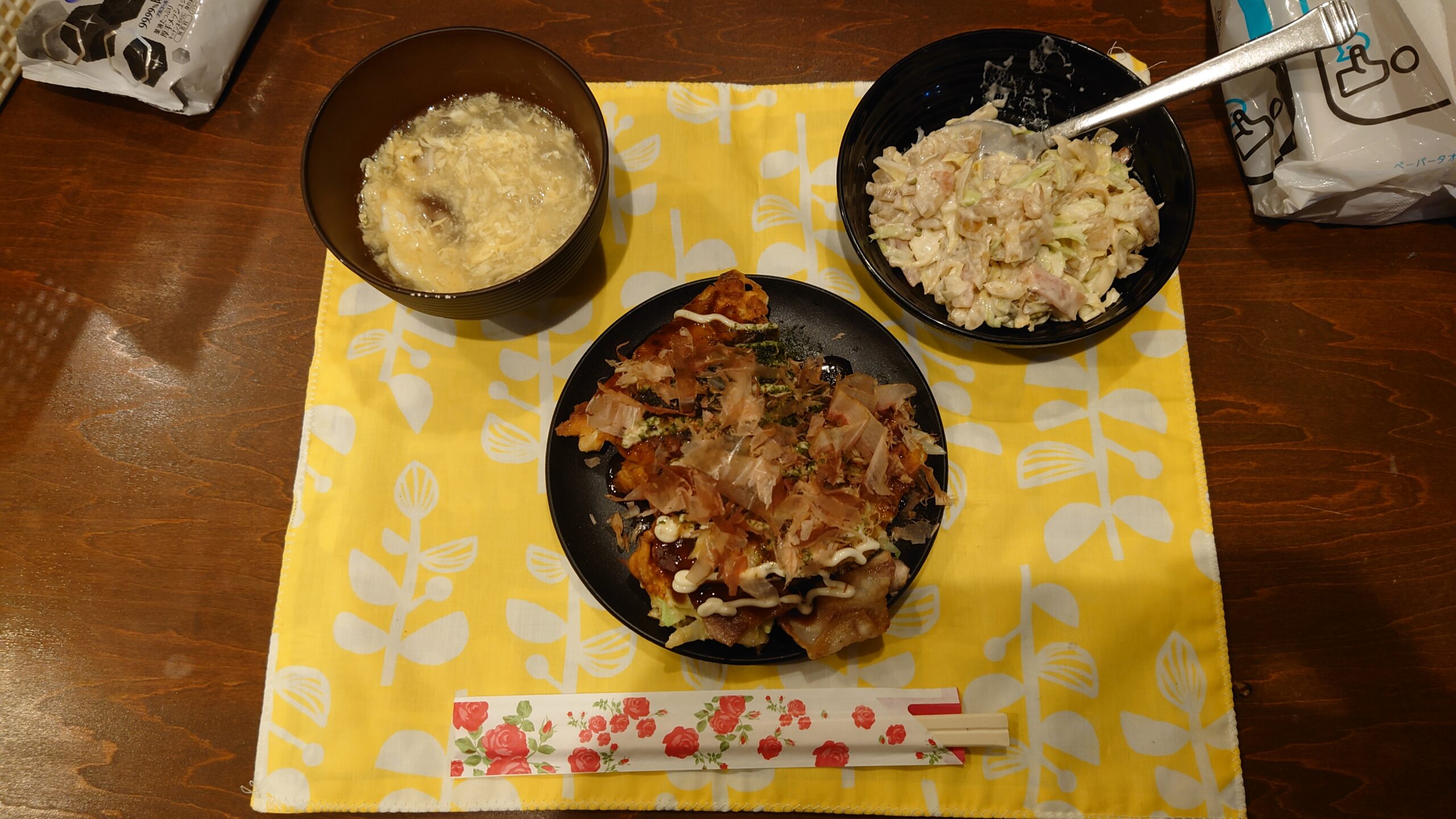 お好み焼き、きのこスープと全て作り、忙しかったね(*_*)