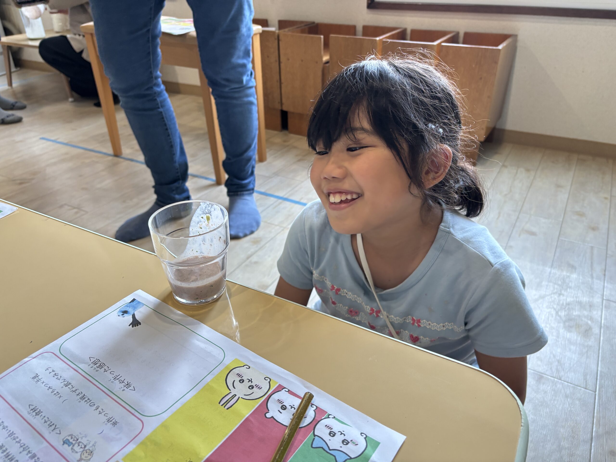 連日の暑さに疲れている姿が見られる為、今週は『3つのグループの食べもの』を学び、食べる為にスムージーを作って飲みました☆