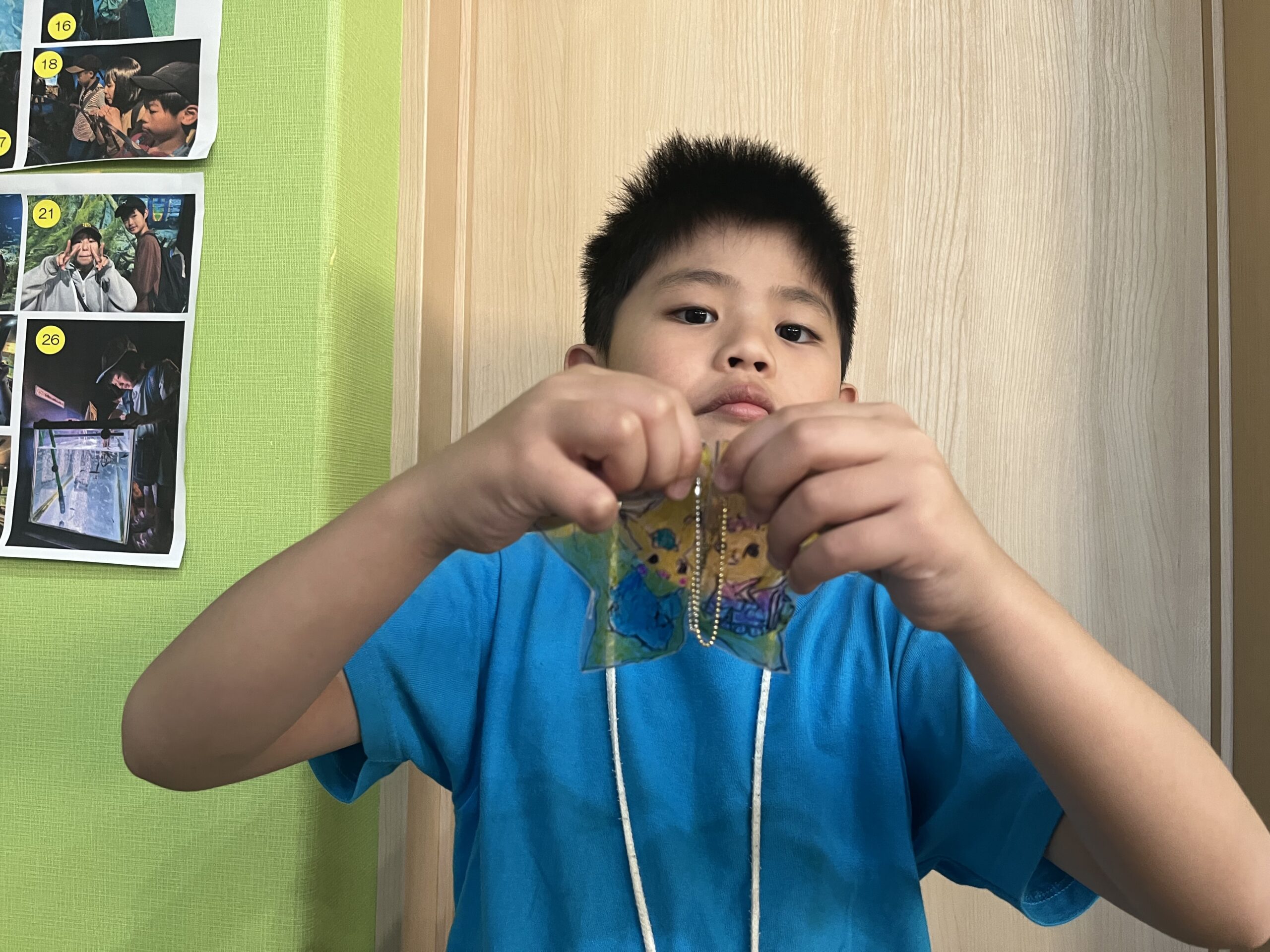 七夕のキャラクターキーホルダーをプラバンで作り、