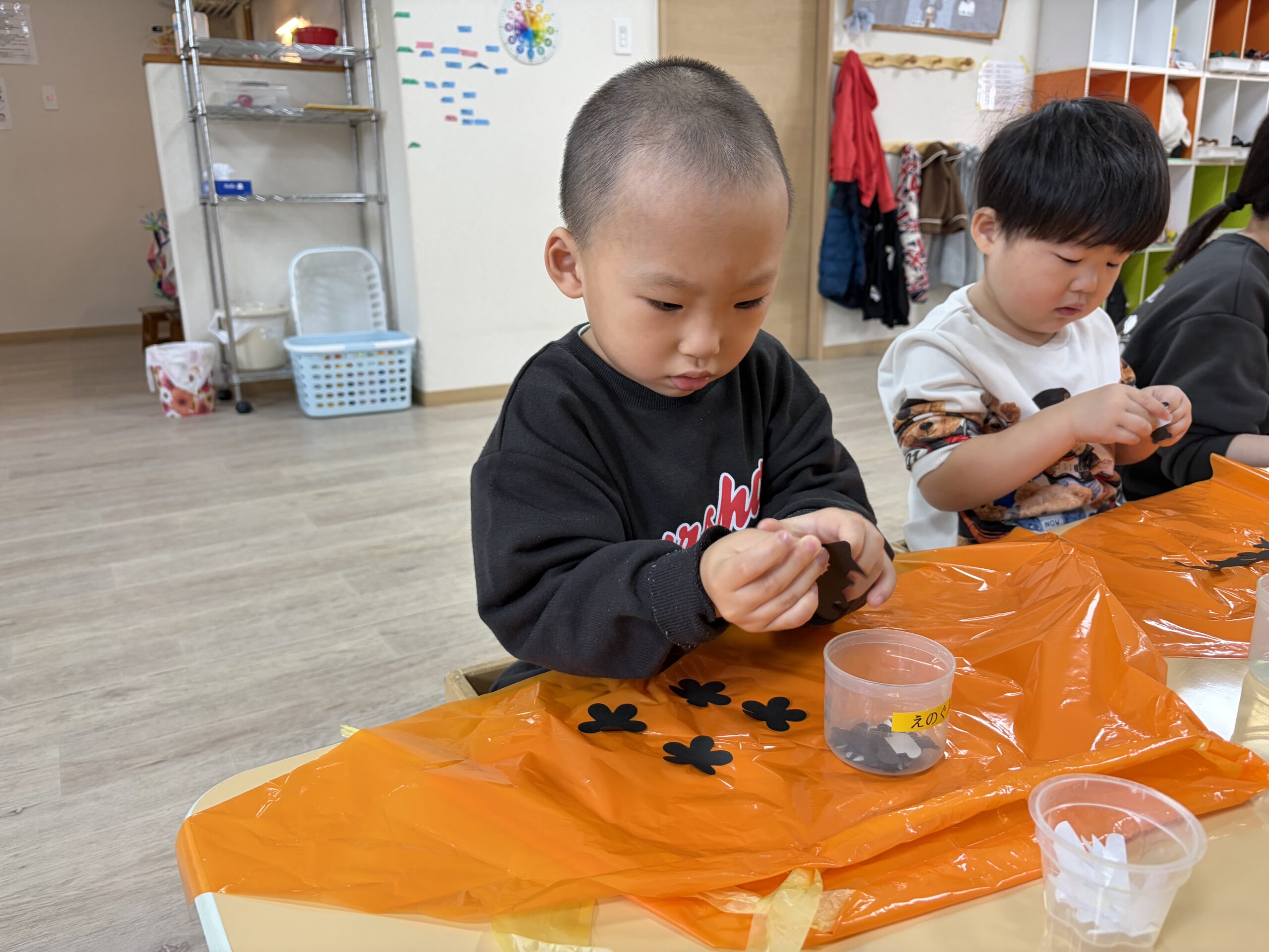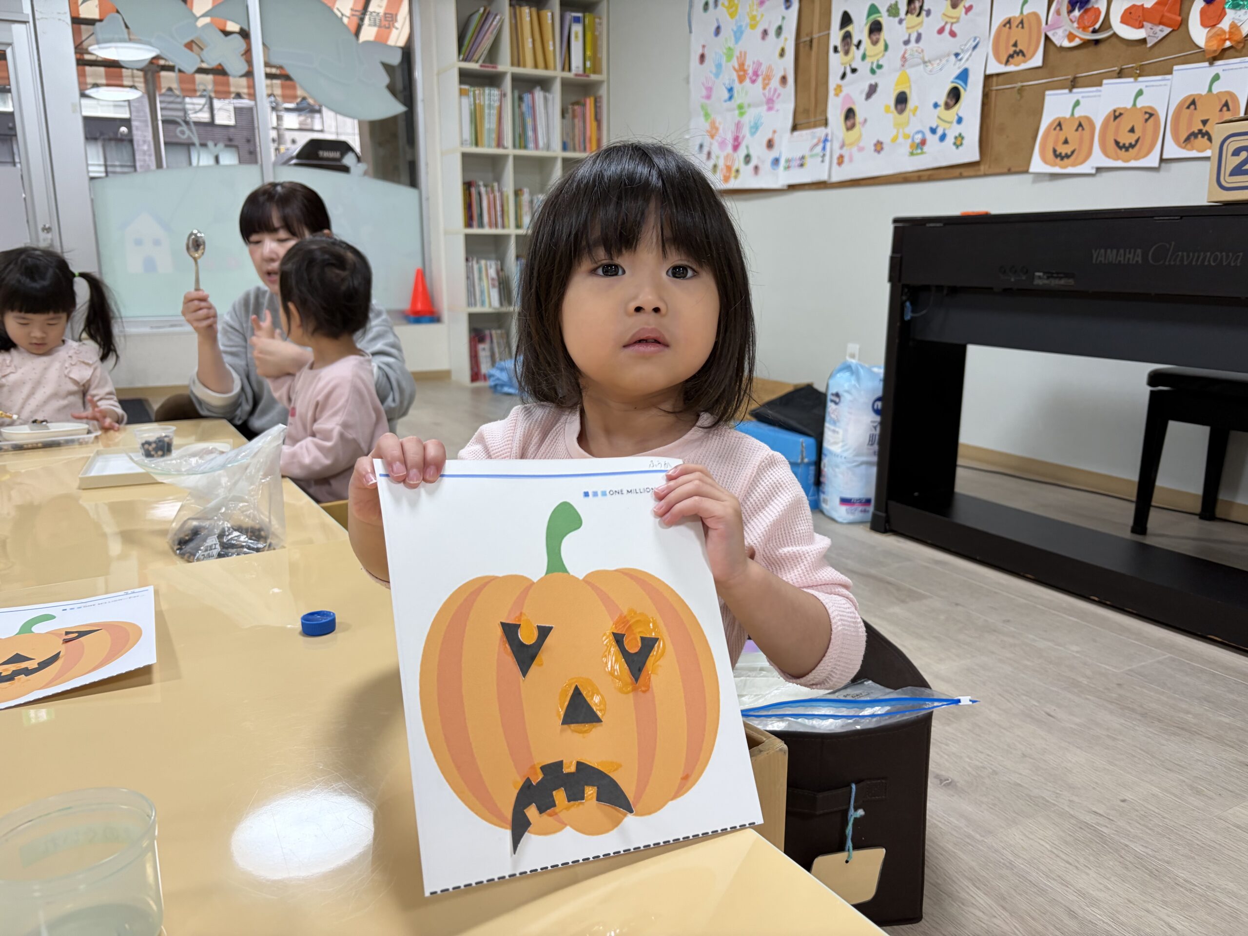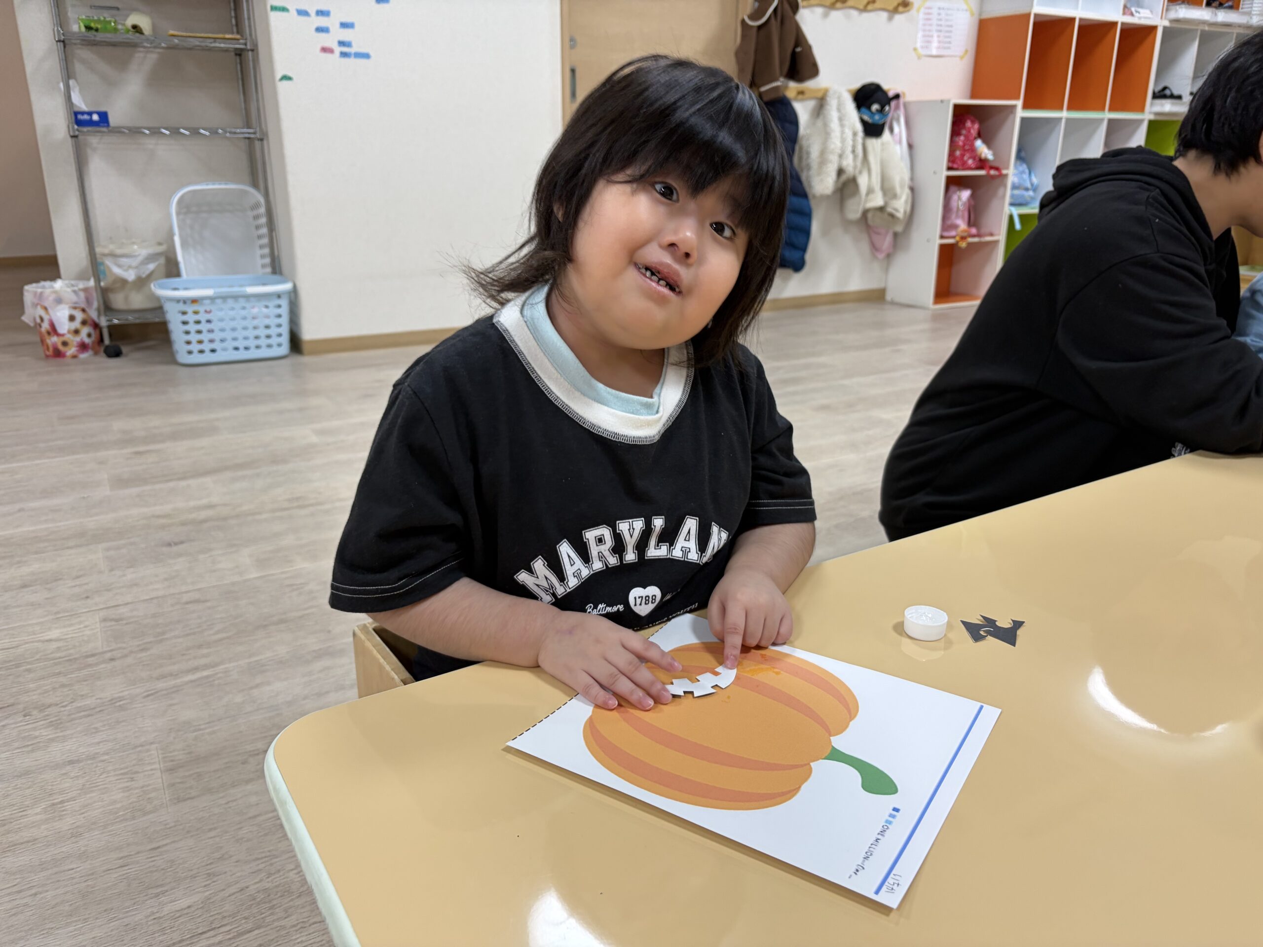 🎃 ハロウィン 🎃 10/30(木)、31(金)にハロウィンを行いました。 今年は午前児童はハロウィン衣装作りから始まり、お化け退治(ボール入れ遊び)をしました。 途中、スタッフが扮するお化けが登場し、強い気持ちで退治しました!