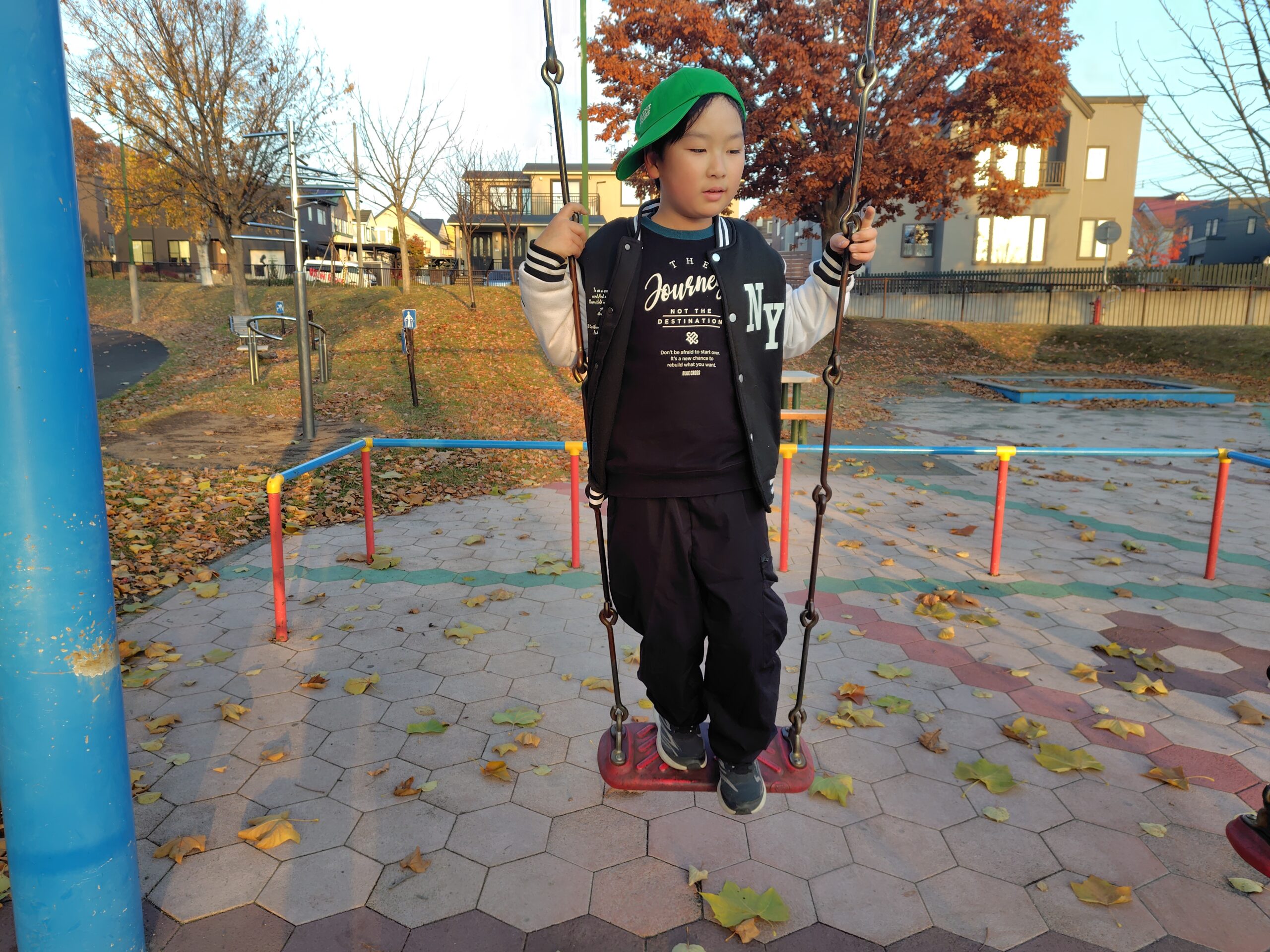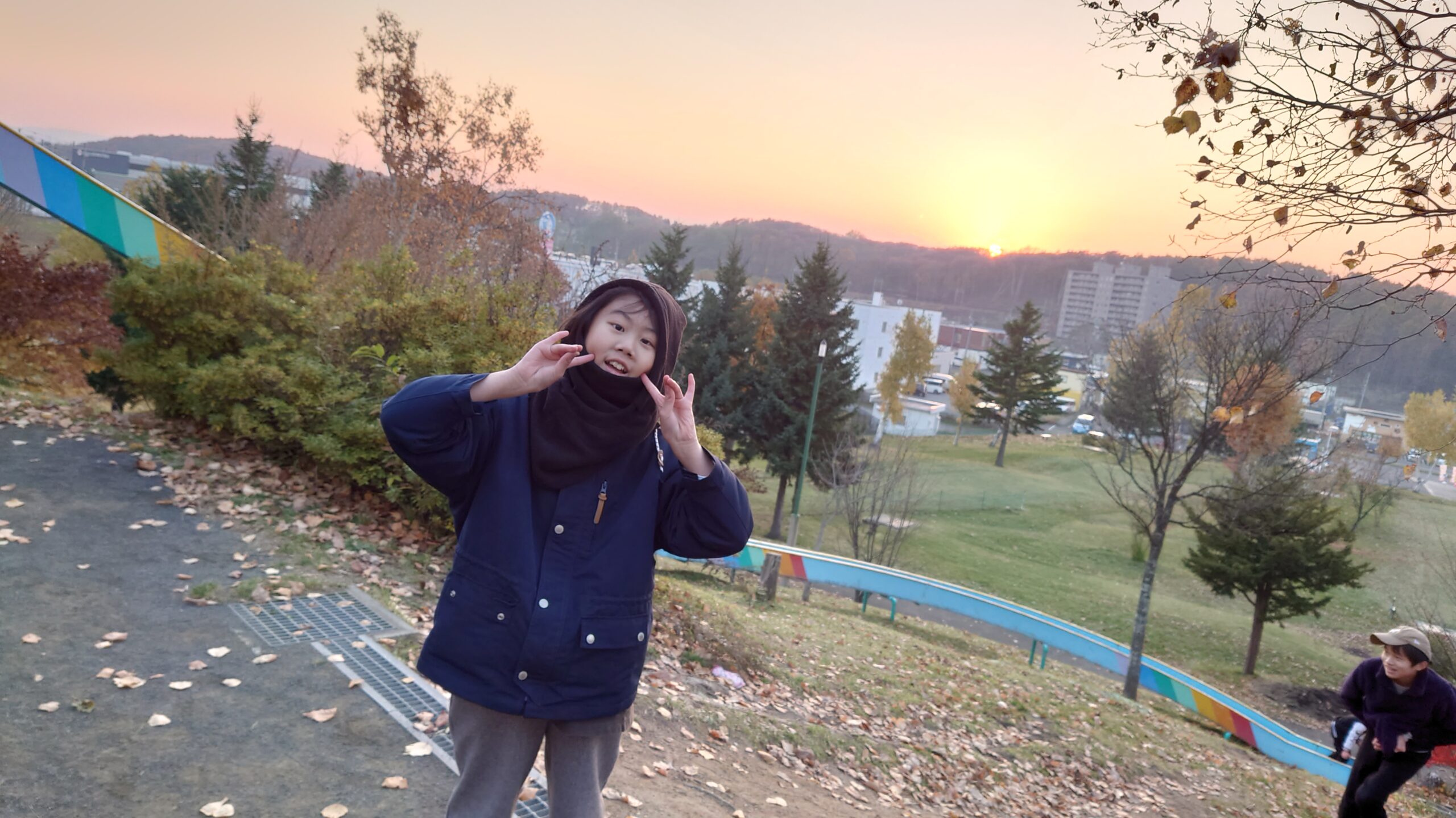今日は天気もよかったため、残り少ない公園あそびに行きました紅葉がキレイなのと夕日がキレイに見えました✨️