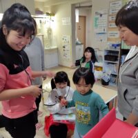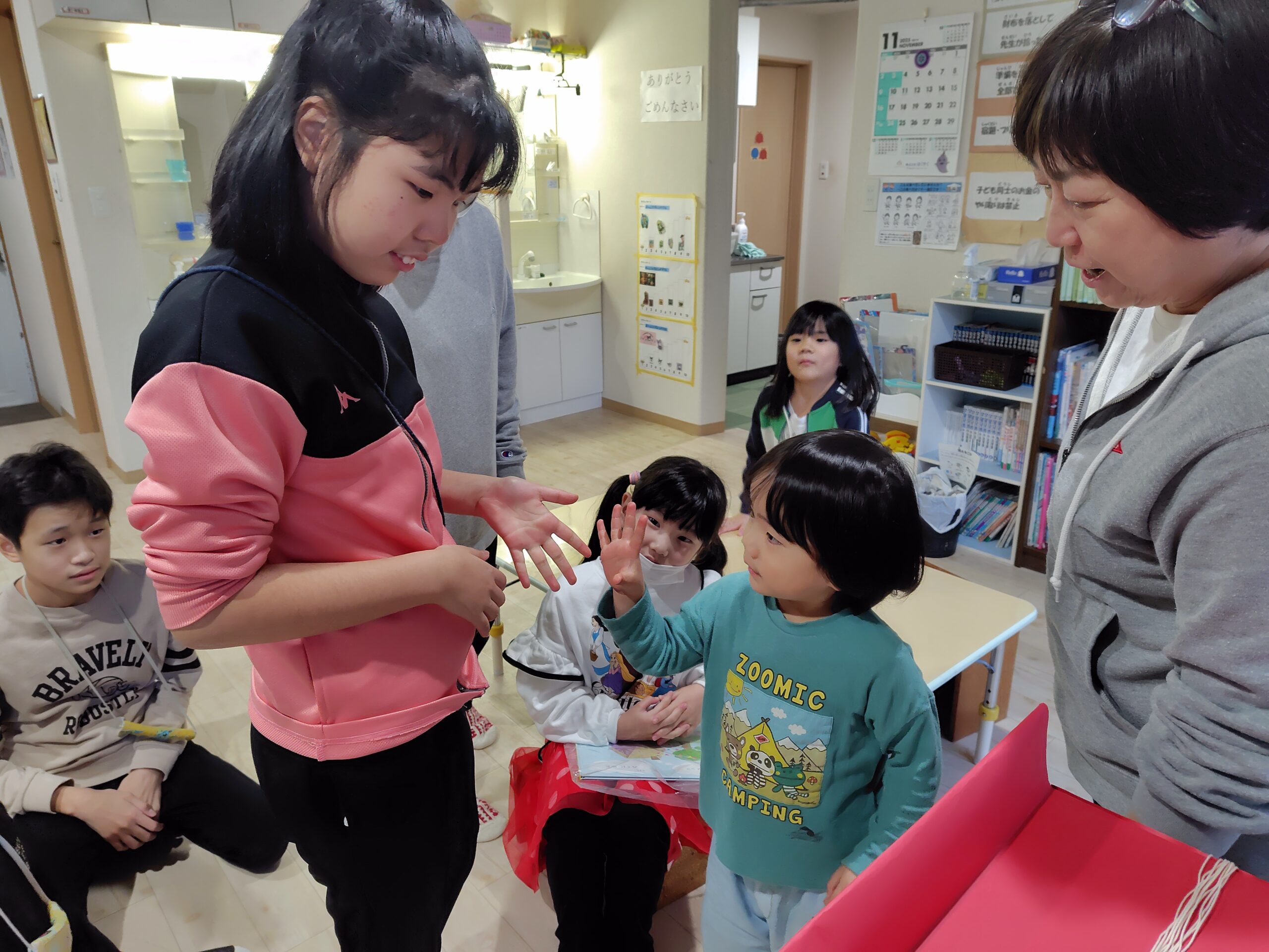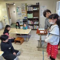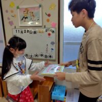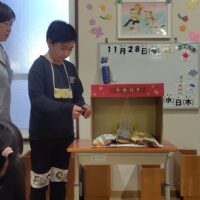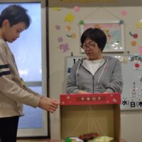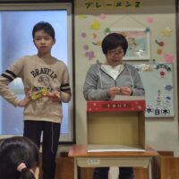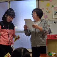 「好きな給食は?」、「嫌いな食べ物は?」などいろいろな質問に答えていました。