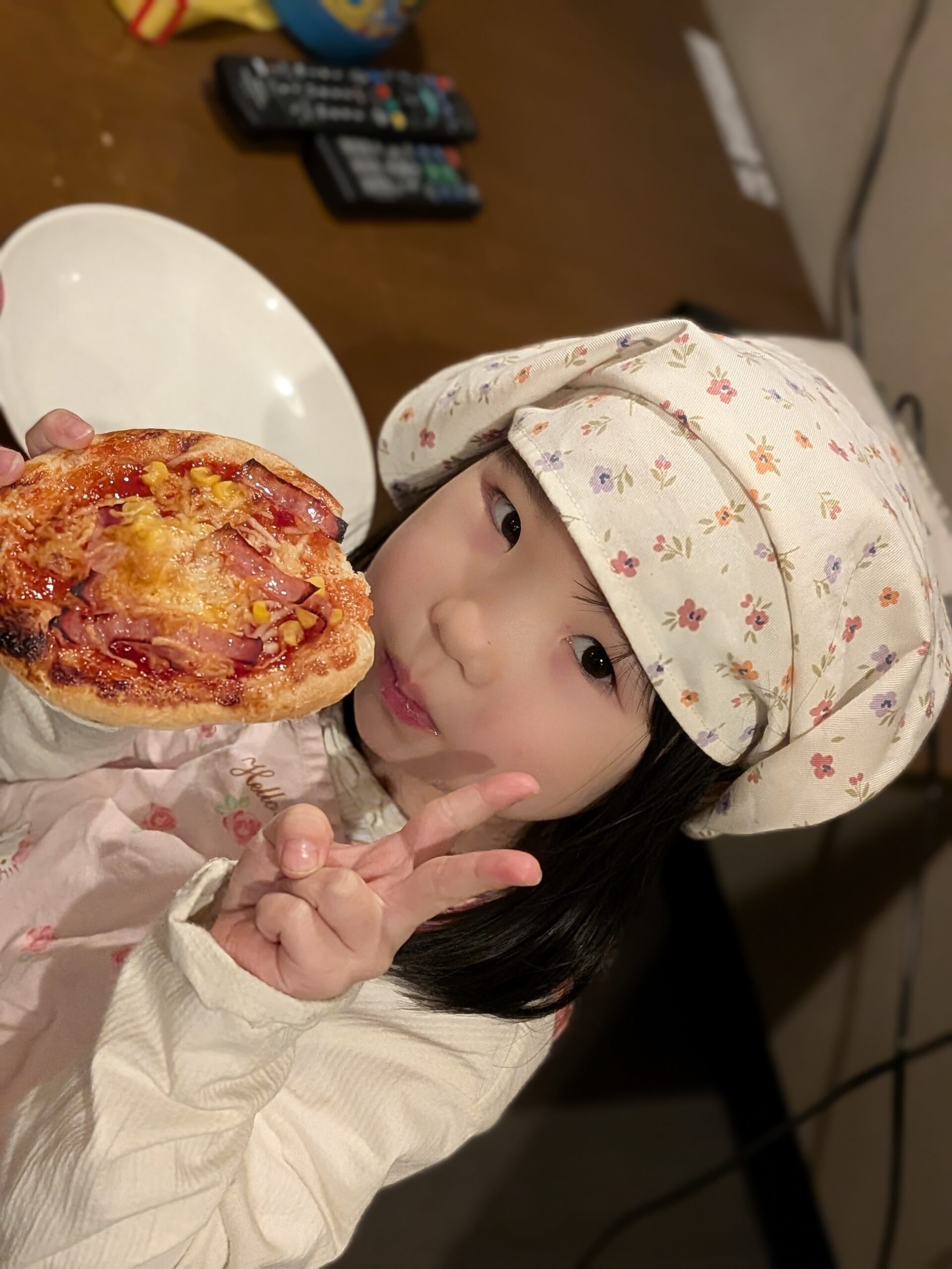 1年生クッキングでは、ピザを作りました!1人1枚自分の好きなトッピングでしたが、野菜が苦手な子もいたため、自分の頑張れる量の野菜をいれるを目標に「〇〇食べる!」と宣言し、彩りよく盛り付けていました( ◜‿◝ )♡