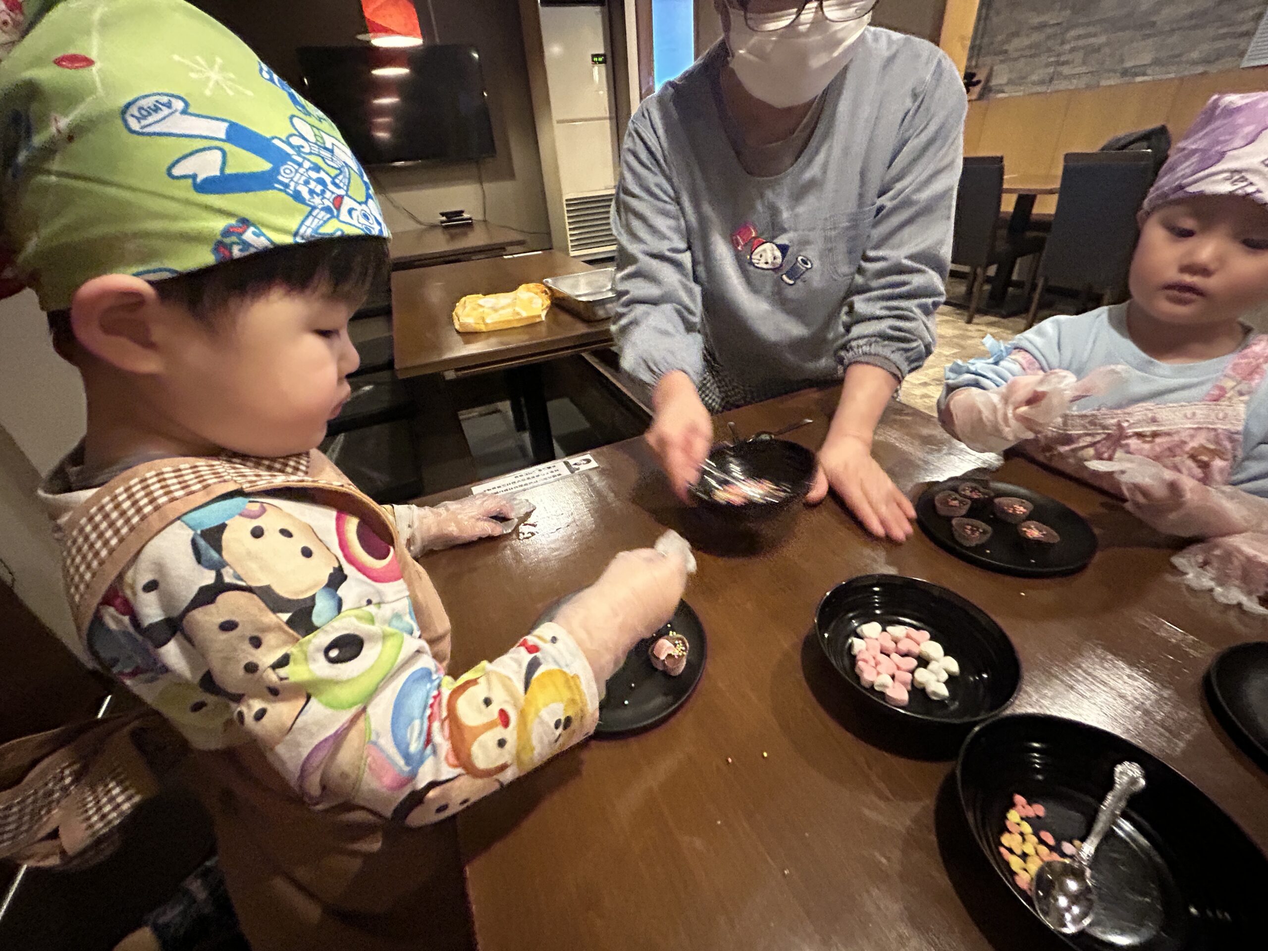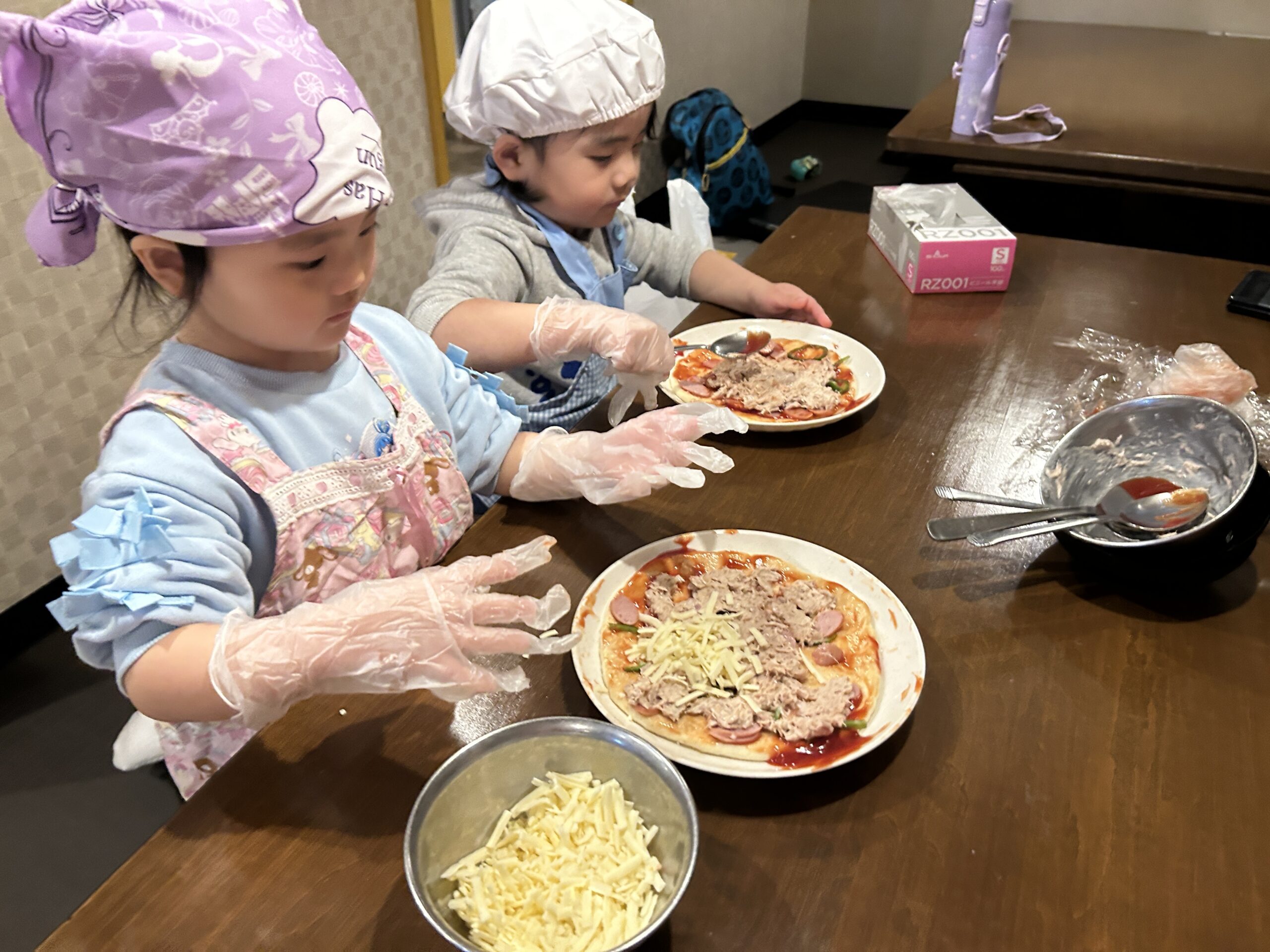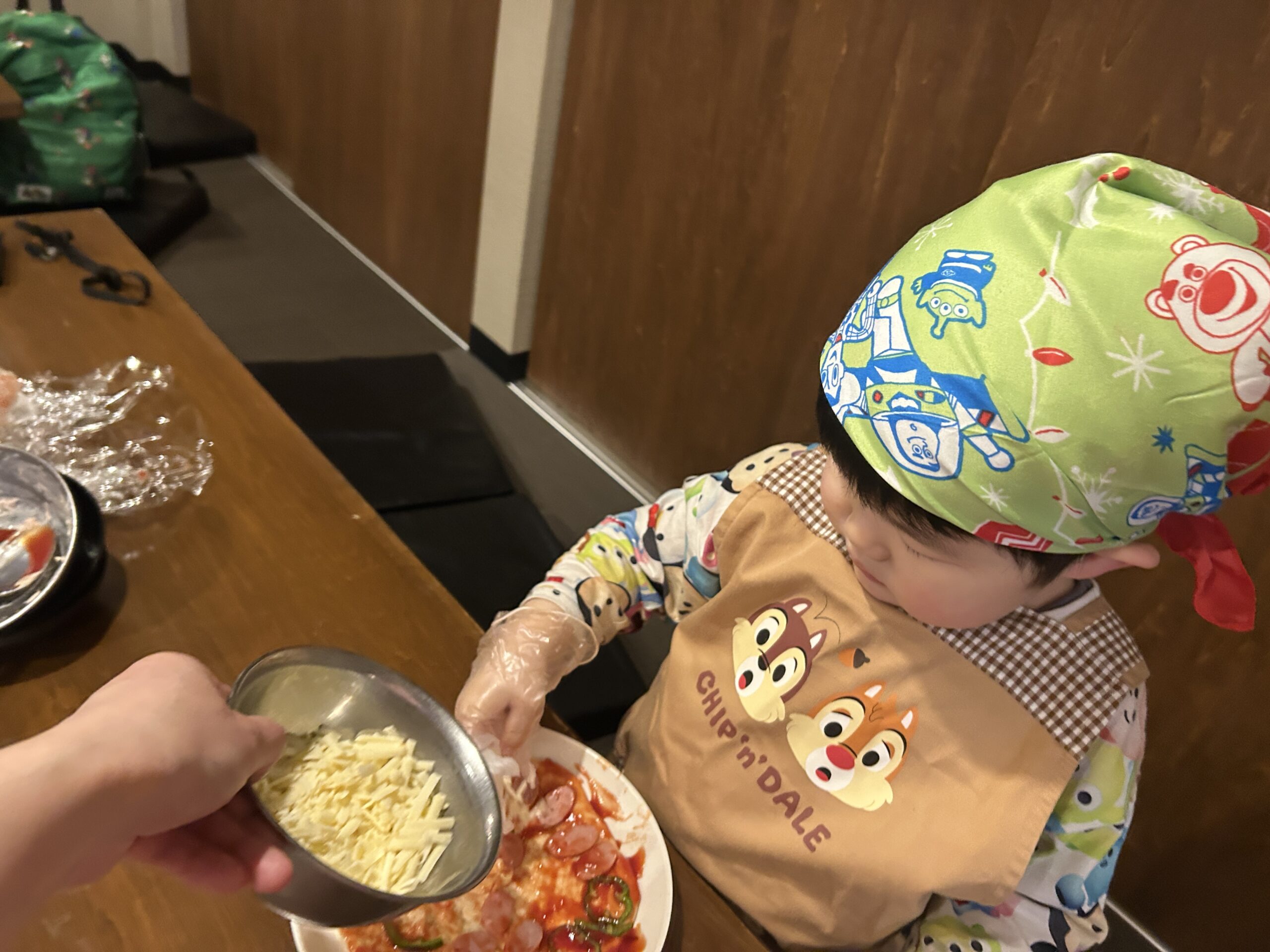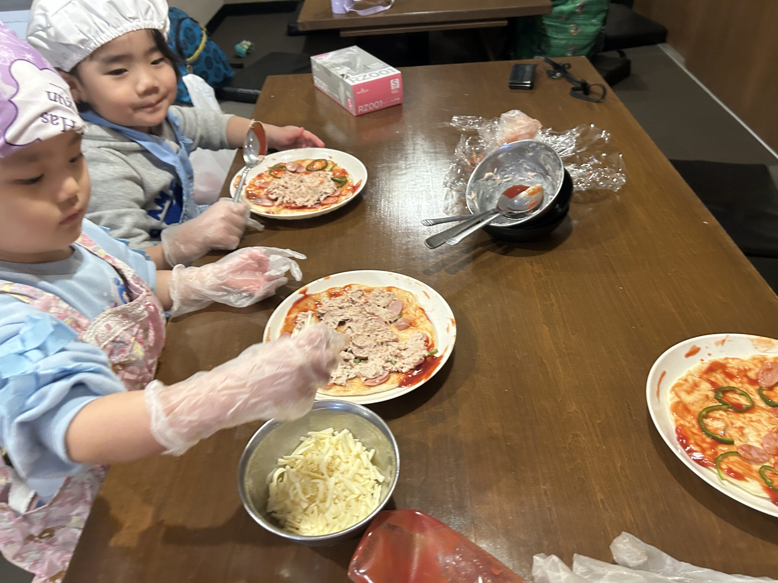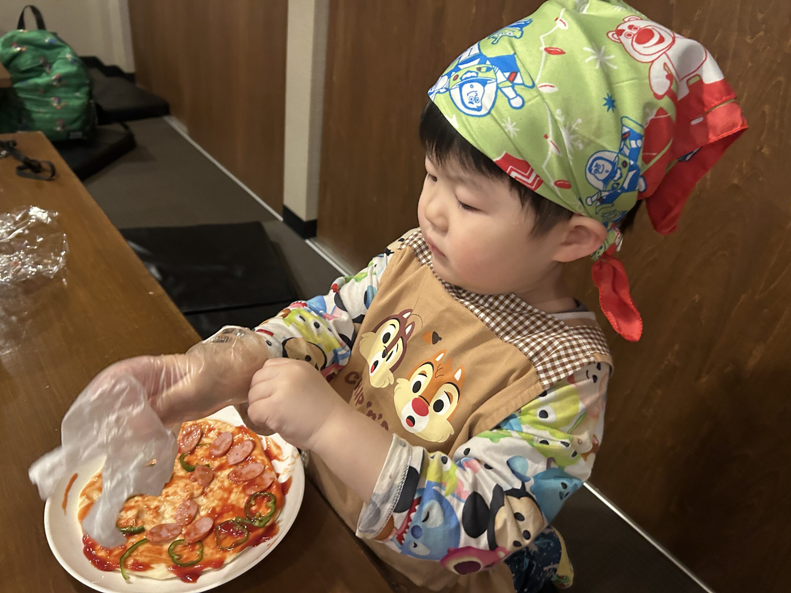 今日の挑戦はピザのトッピングとチョコをデコレーションしました!