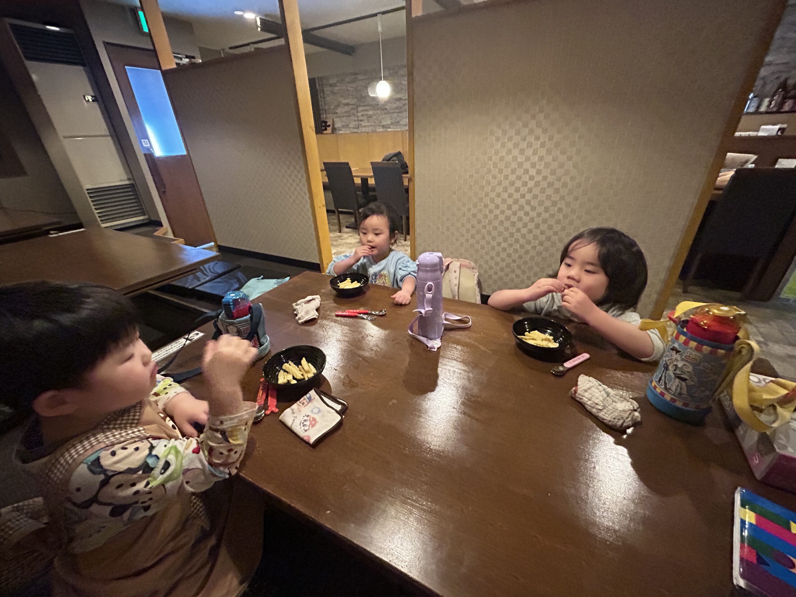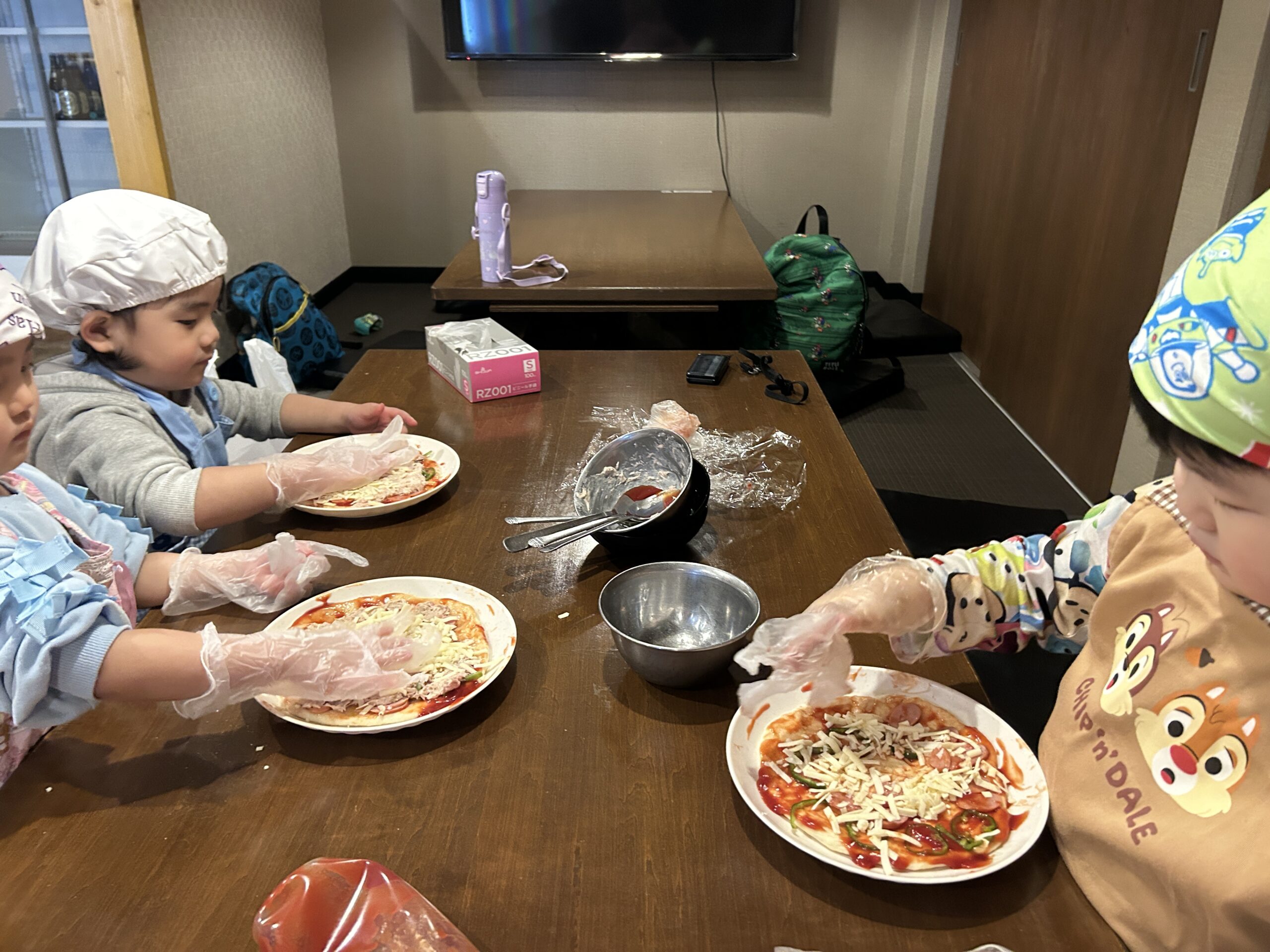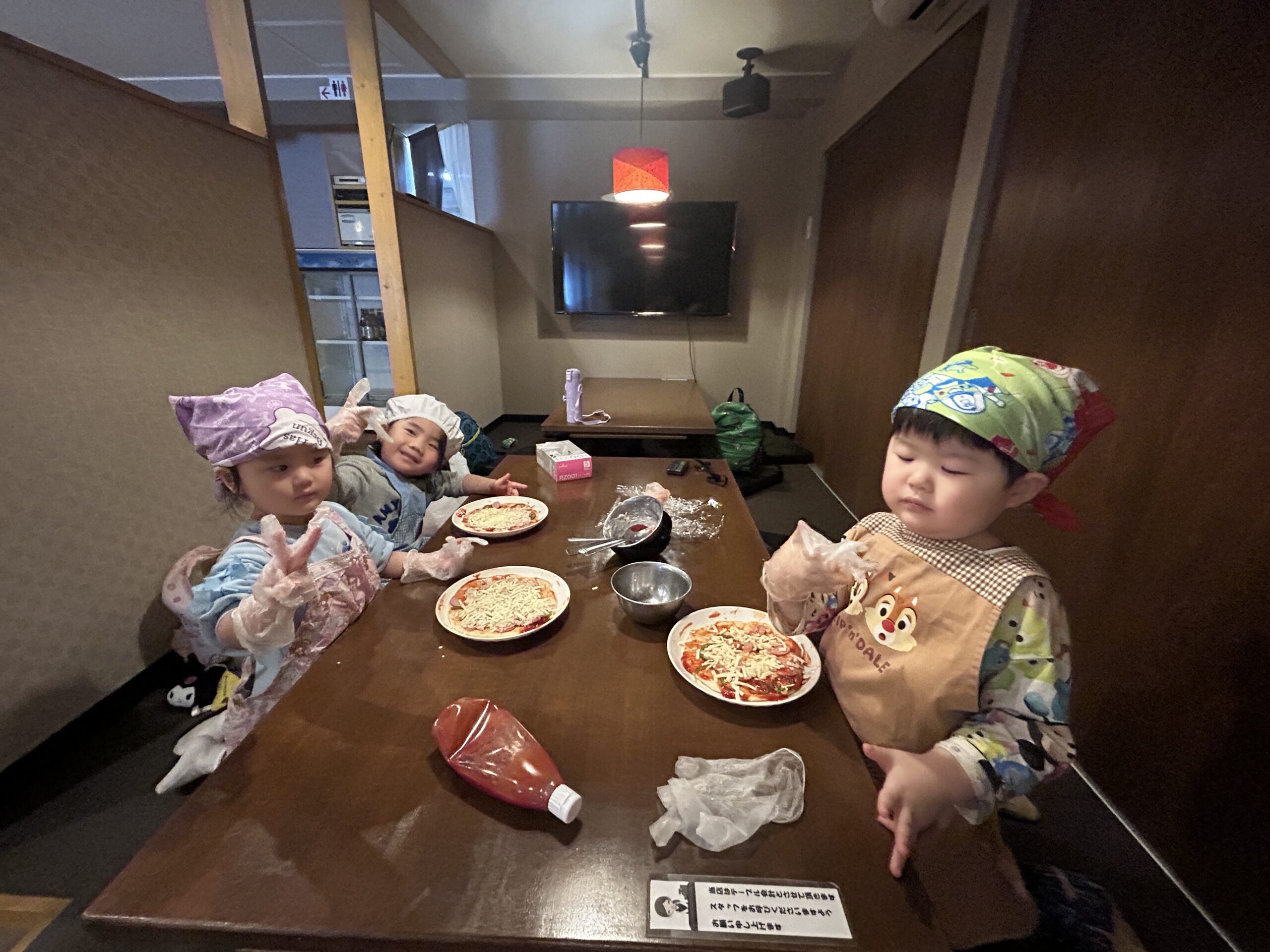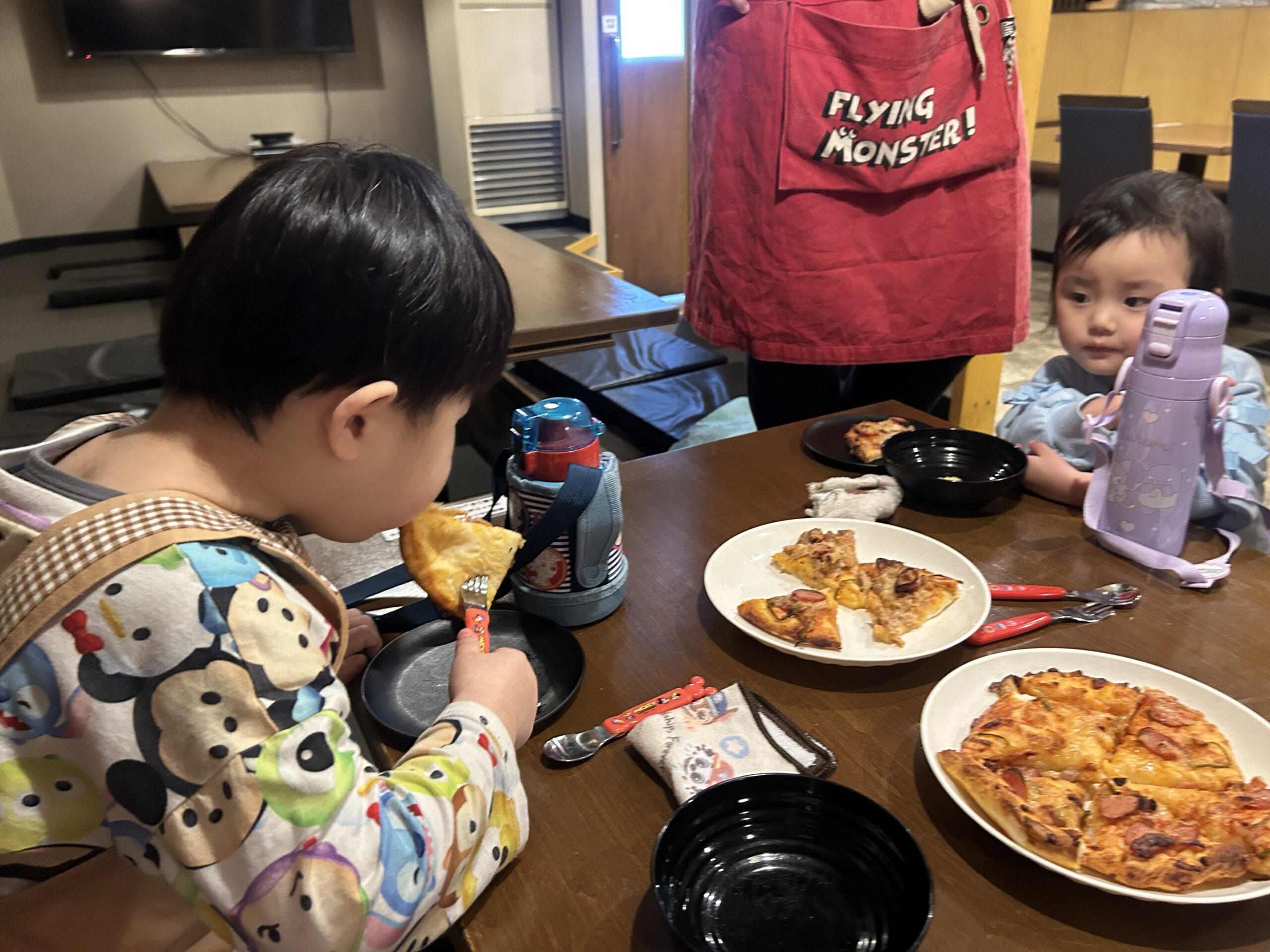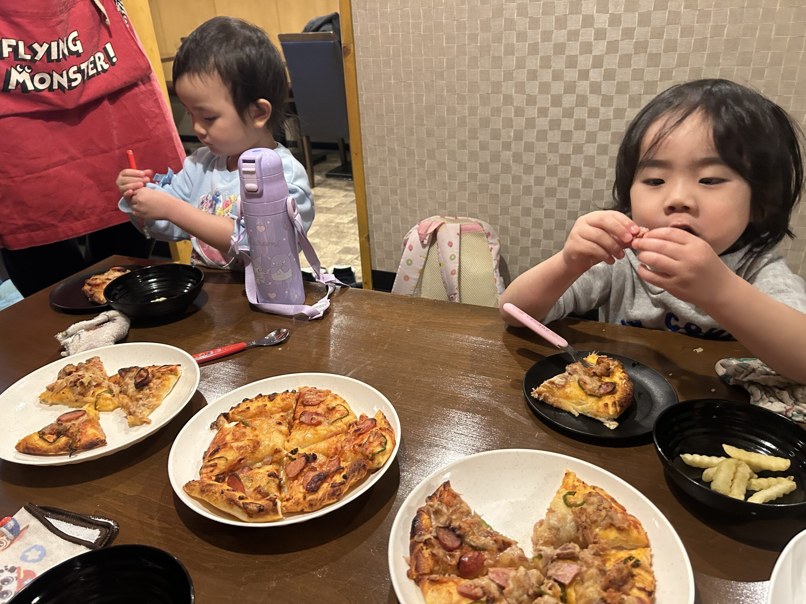 みんなポテトが大好きでポテトを食べがちでしたが、ピザも出来立てで美味しく、一切れ以上食べました!