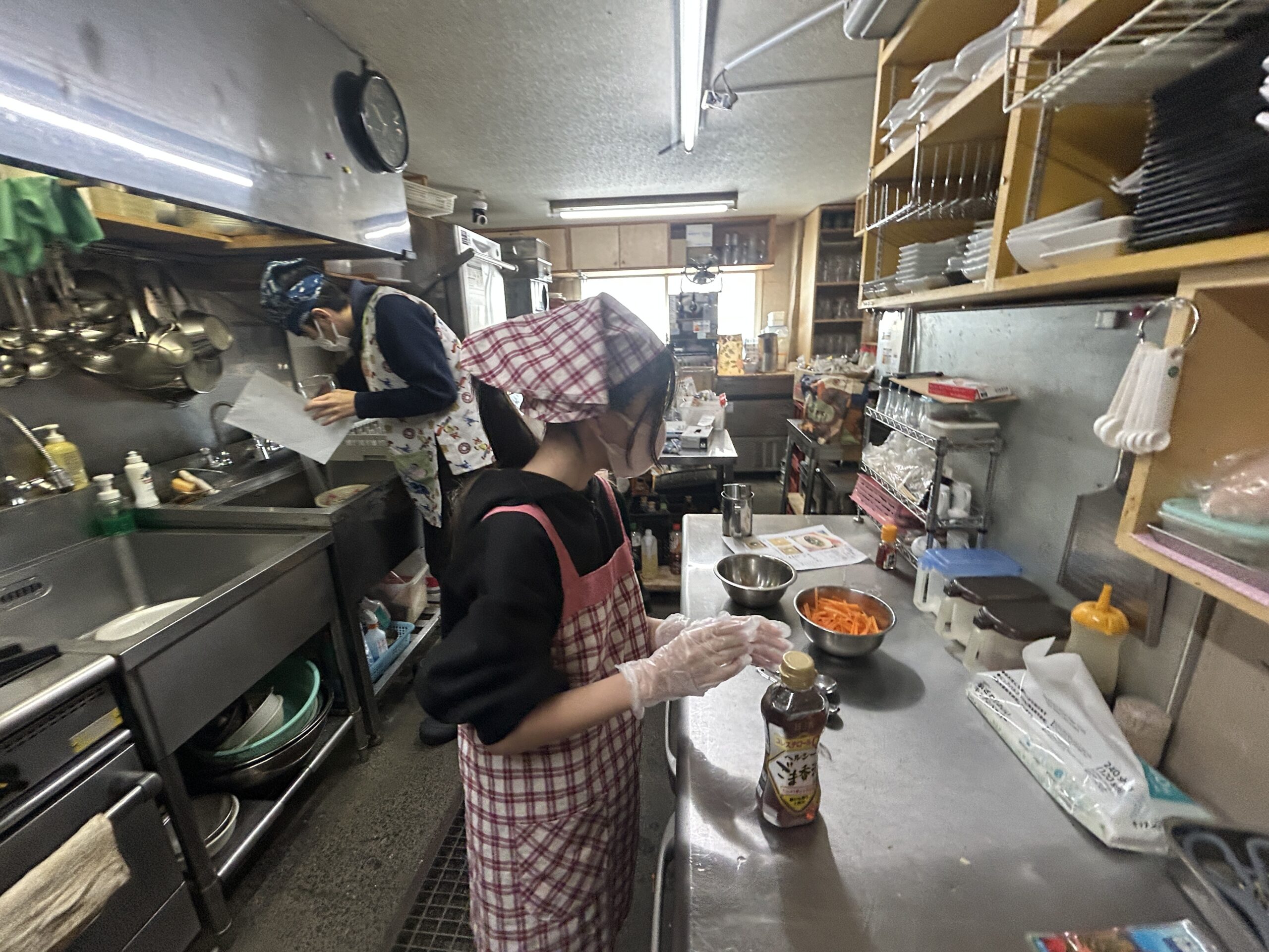 短冊切りに挑戦するメンバーと、もやしやお肉を切るメンバーにわかれて行いました⭐︎