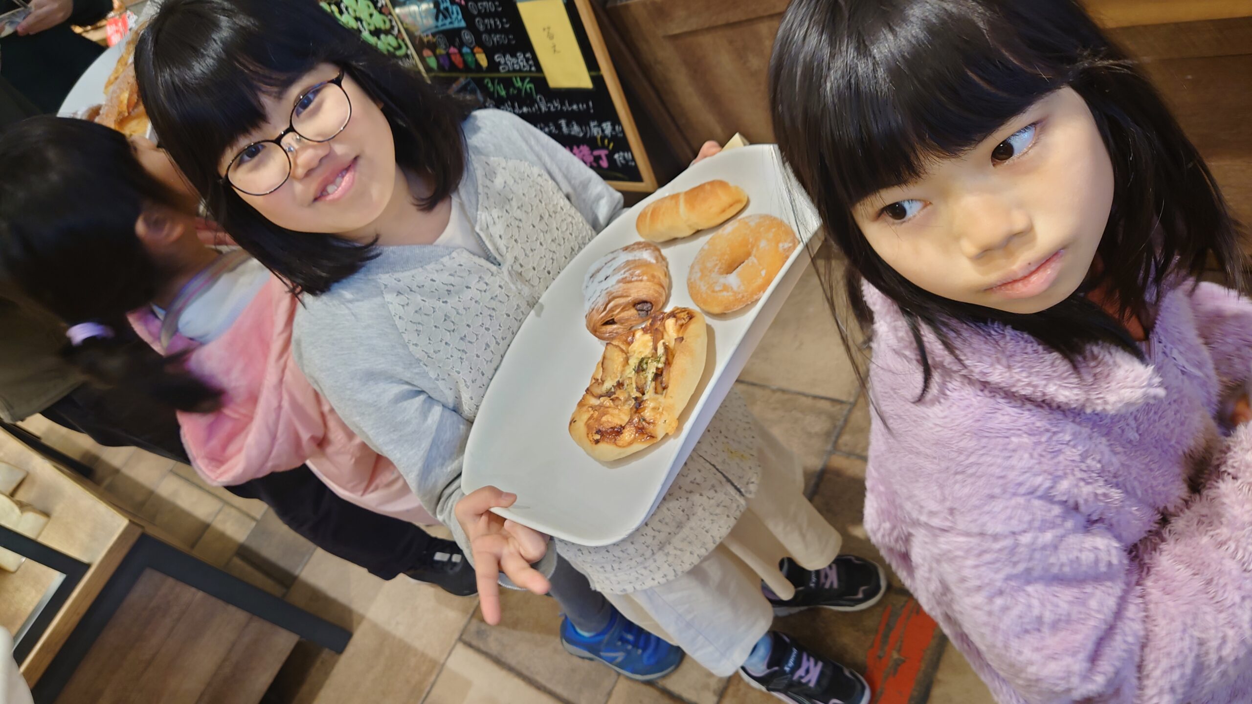 温泉の後は、どんぐり大麻店でパンを購入しました!種類が多く3周している子もいました(^^;)