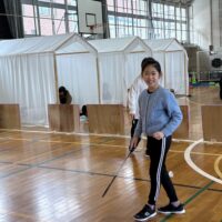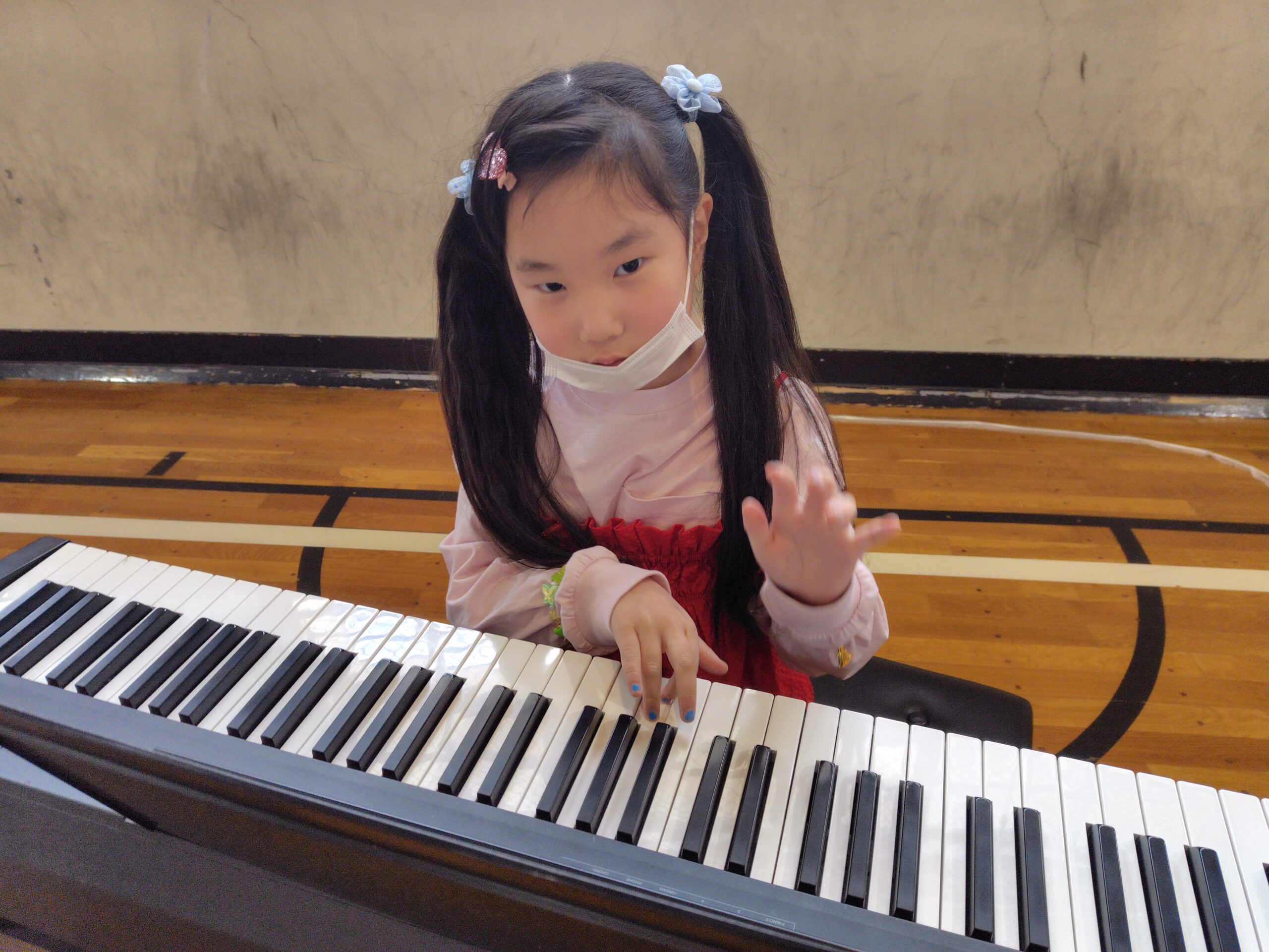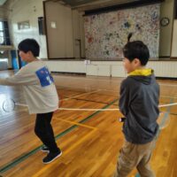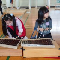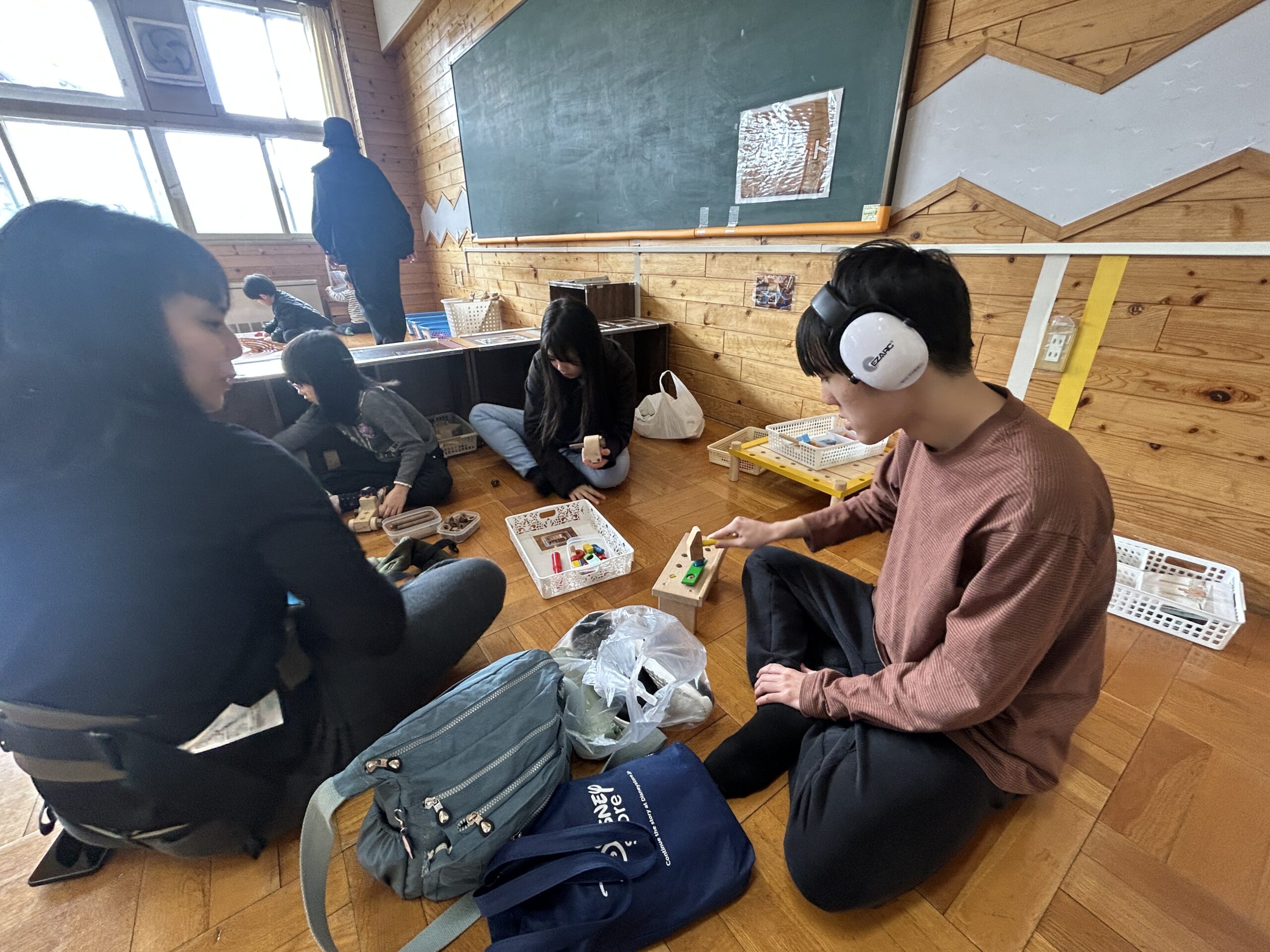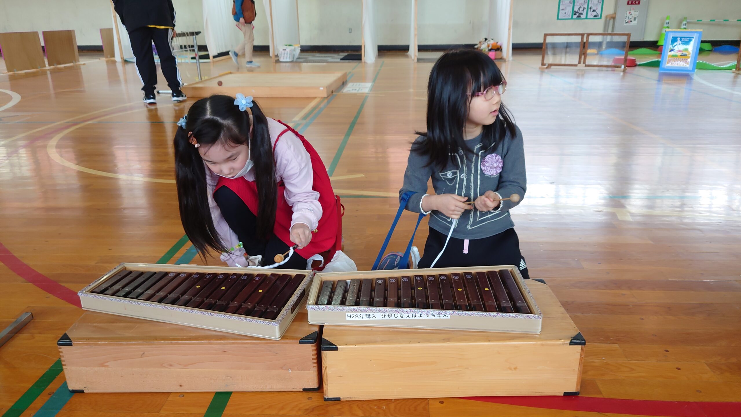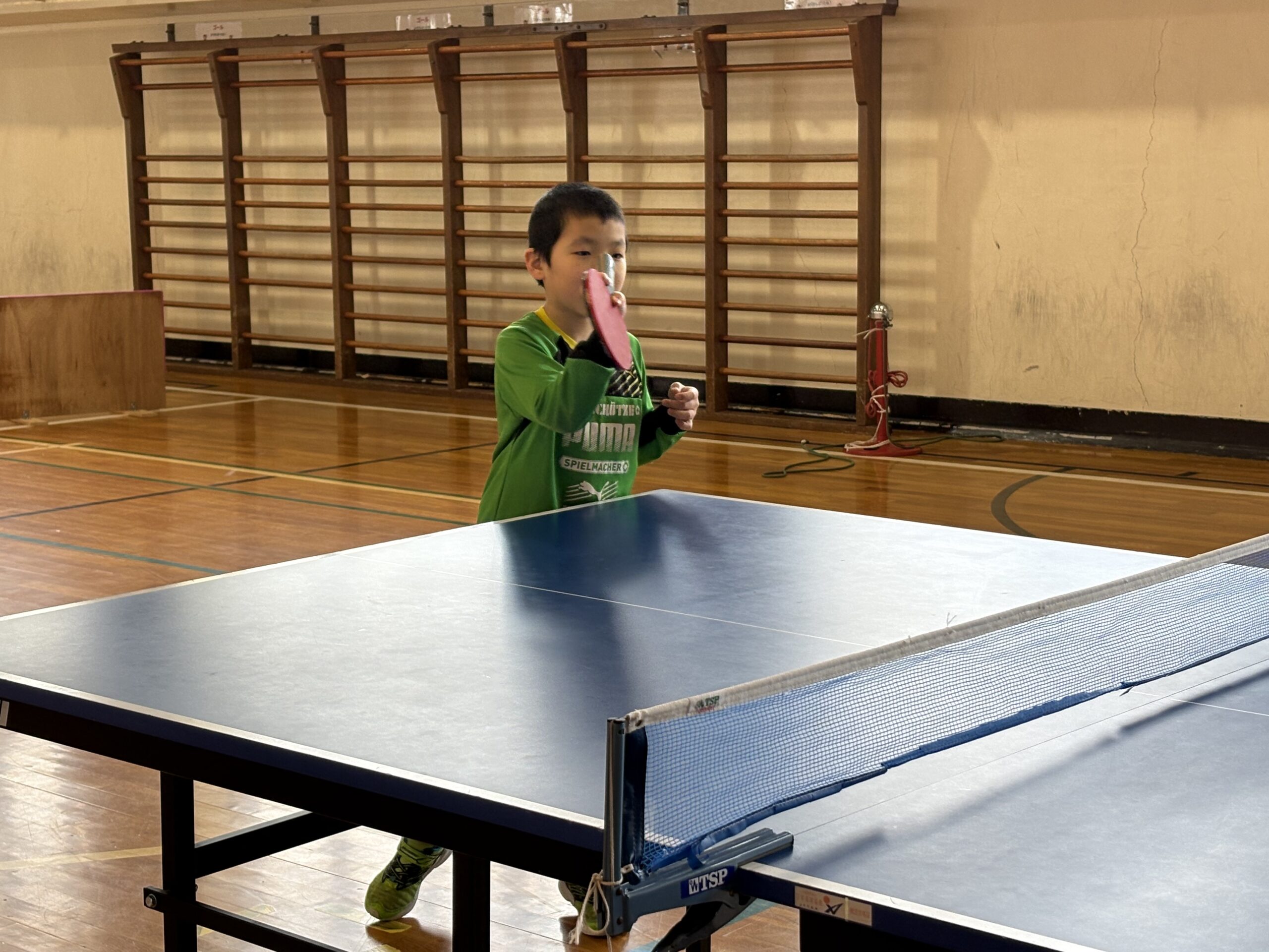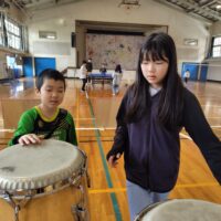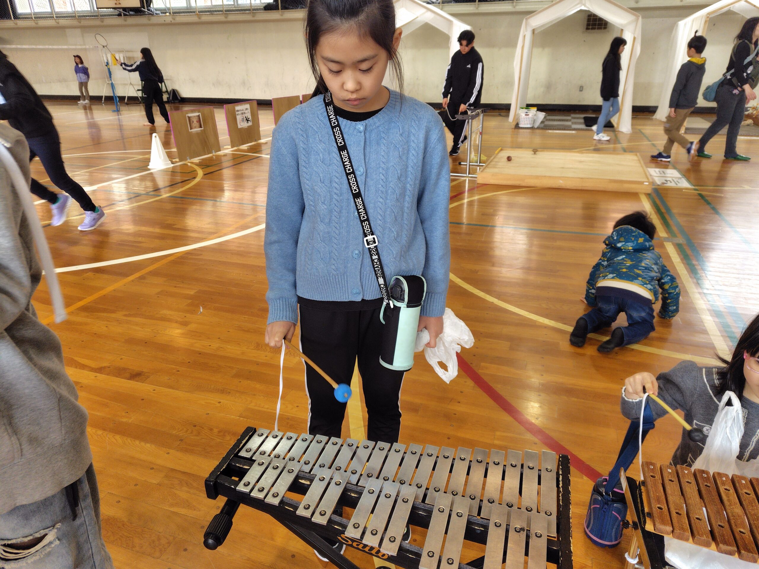体育館でバトミントンや卓球、楽器を触ったり、